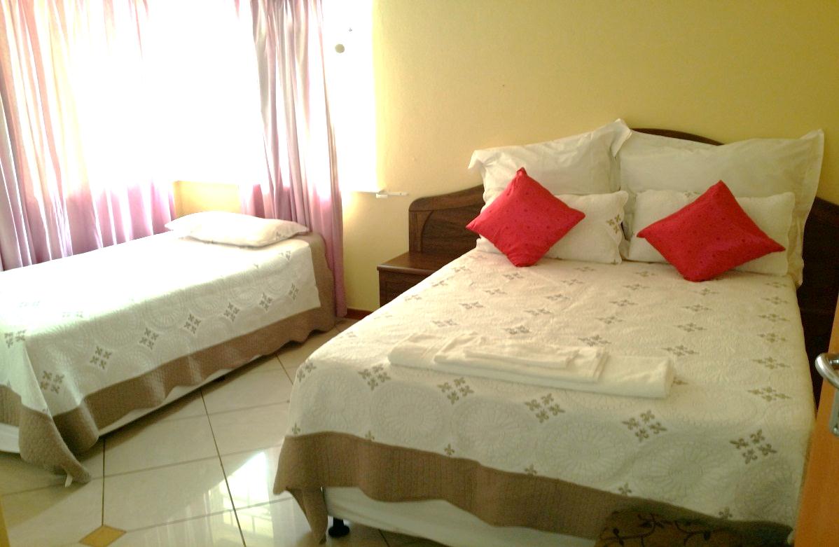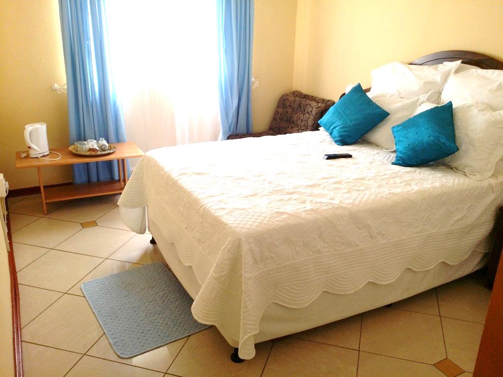 This means "Cater me." These are the standard rooms at the guest house oozing comfort and status. All TV's are installed with DSTV and numerous channels available, private comfort and couch and table, "serve